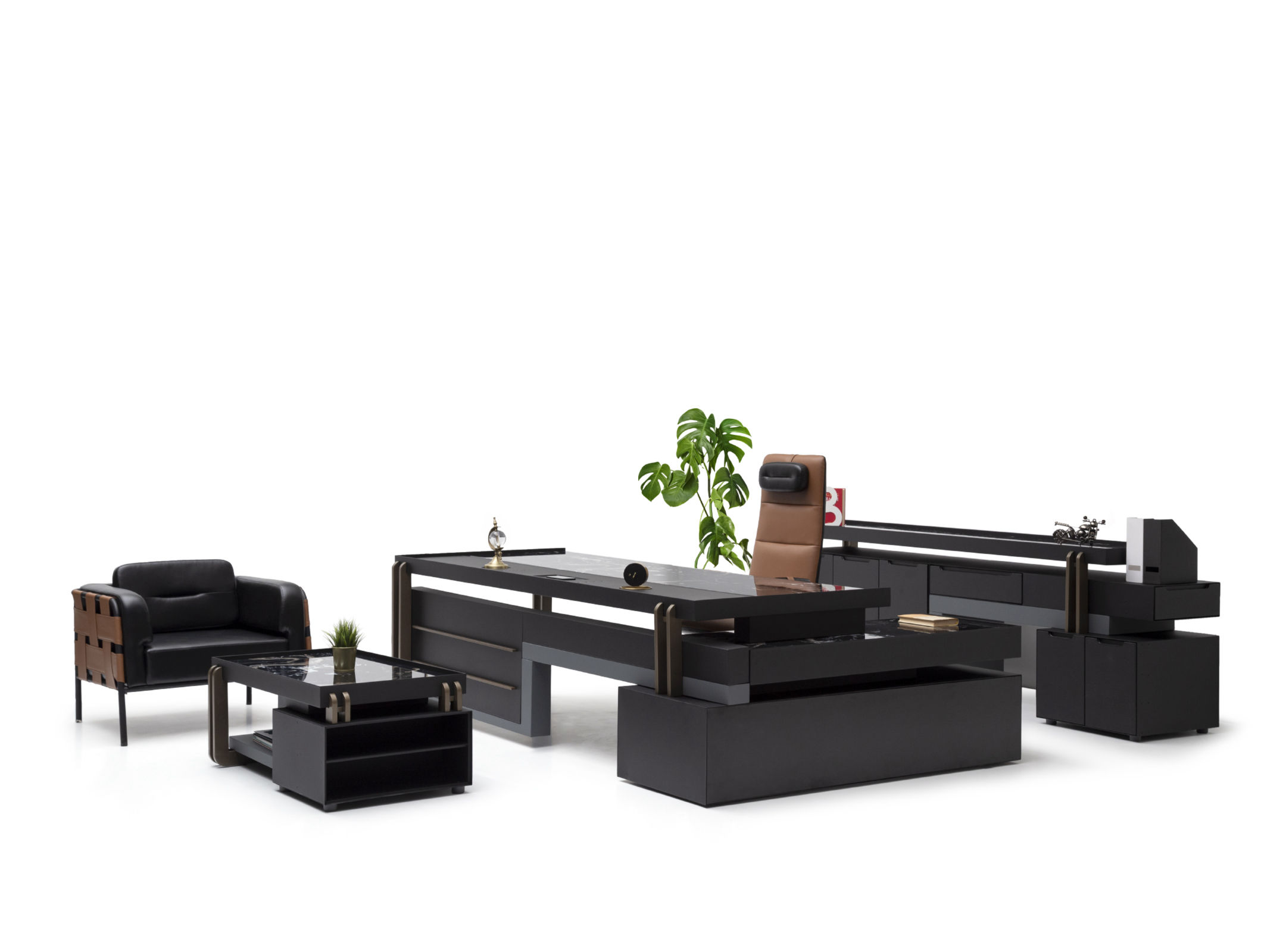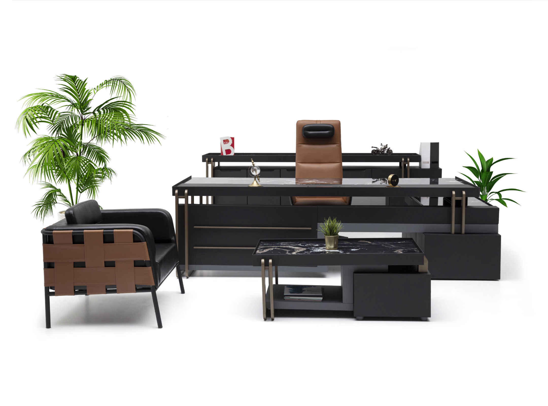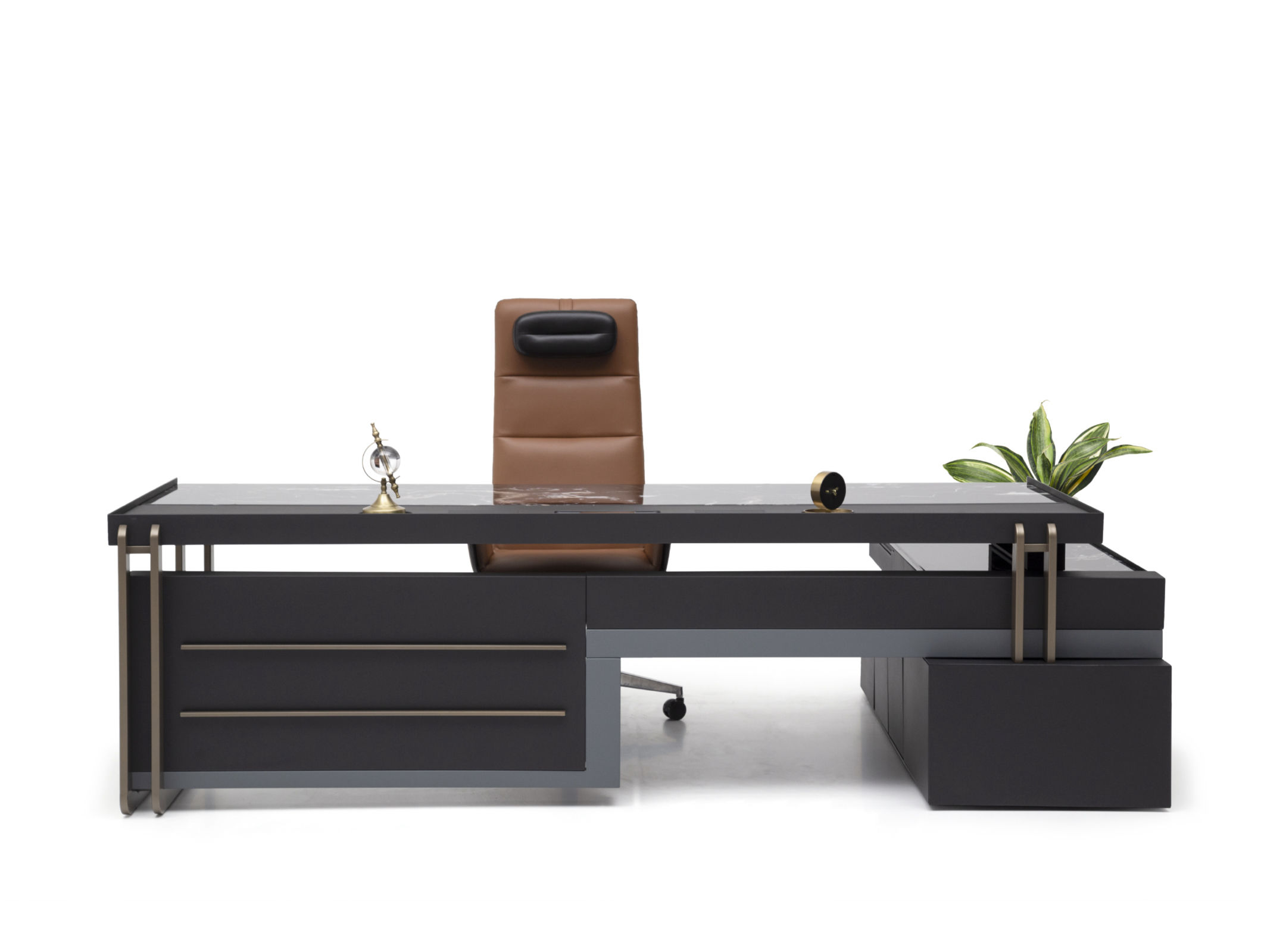 Ağır yapısı ile güven veren Bigboss, alışılagelmişin dışında kullanılan renkli metal vurgularla diğer mobilyalardan kendini ayırıyor. İnce yapısına rağmen, doygun mobilyayı dik tutan ayaklar başarıyla tasarlanmış masa yanı yardımcısından da destek alıyor. Tek parça standardından uzaklaşarak kalıptan ayrılan geniş çalışma yüzeyi, tasarımın detaylarındaki zarafeti daha göz alıcı yapıyor.
