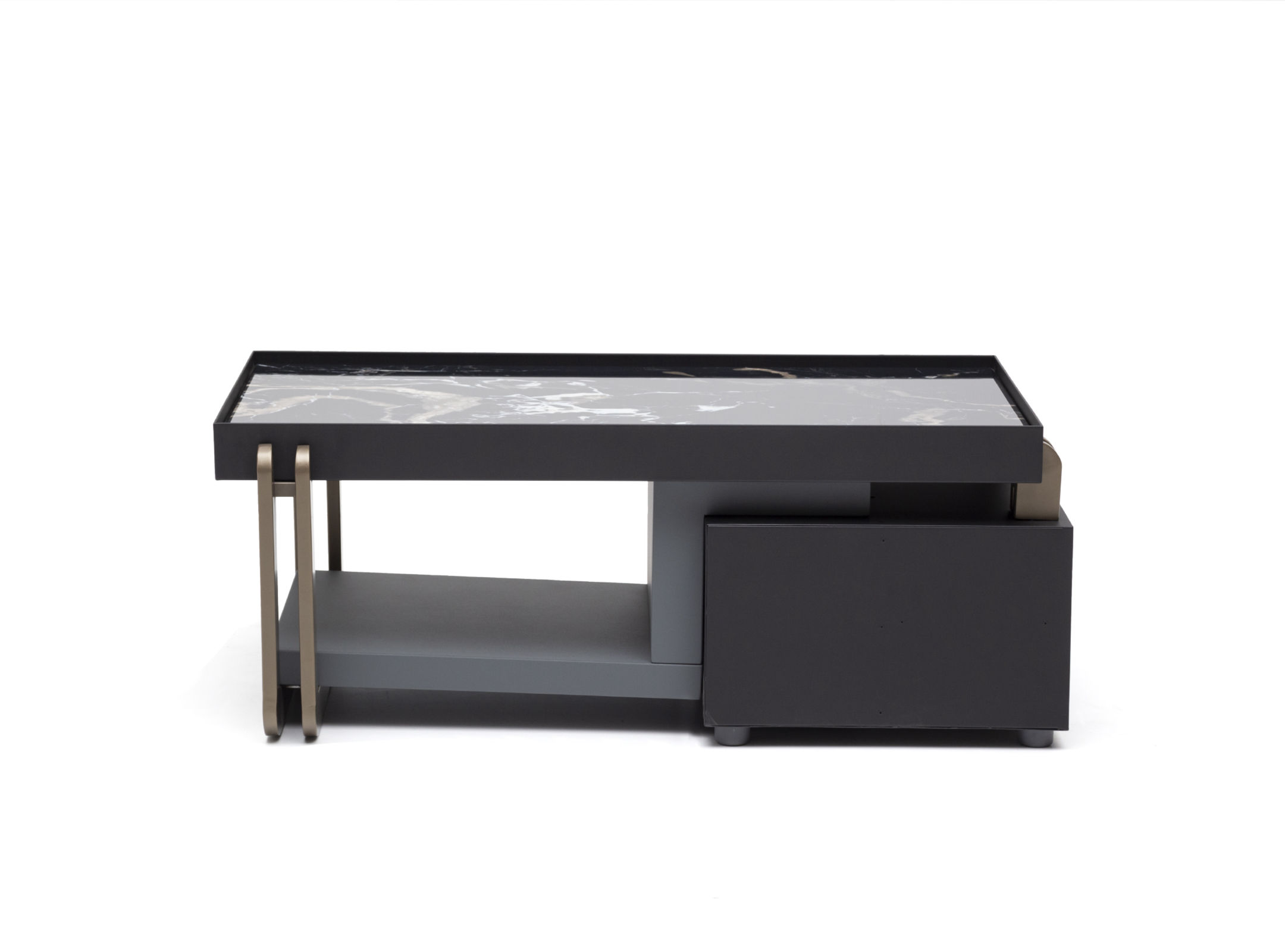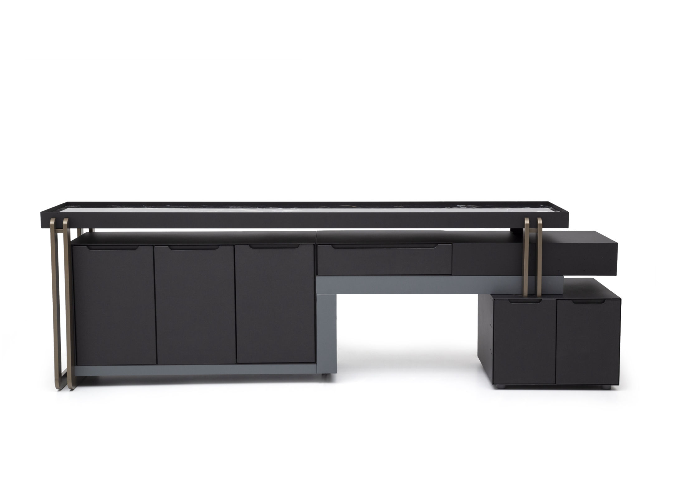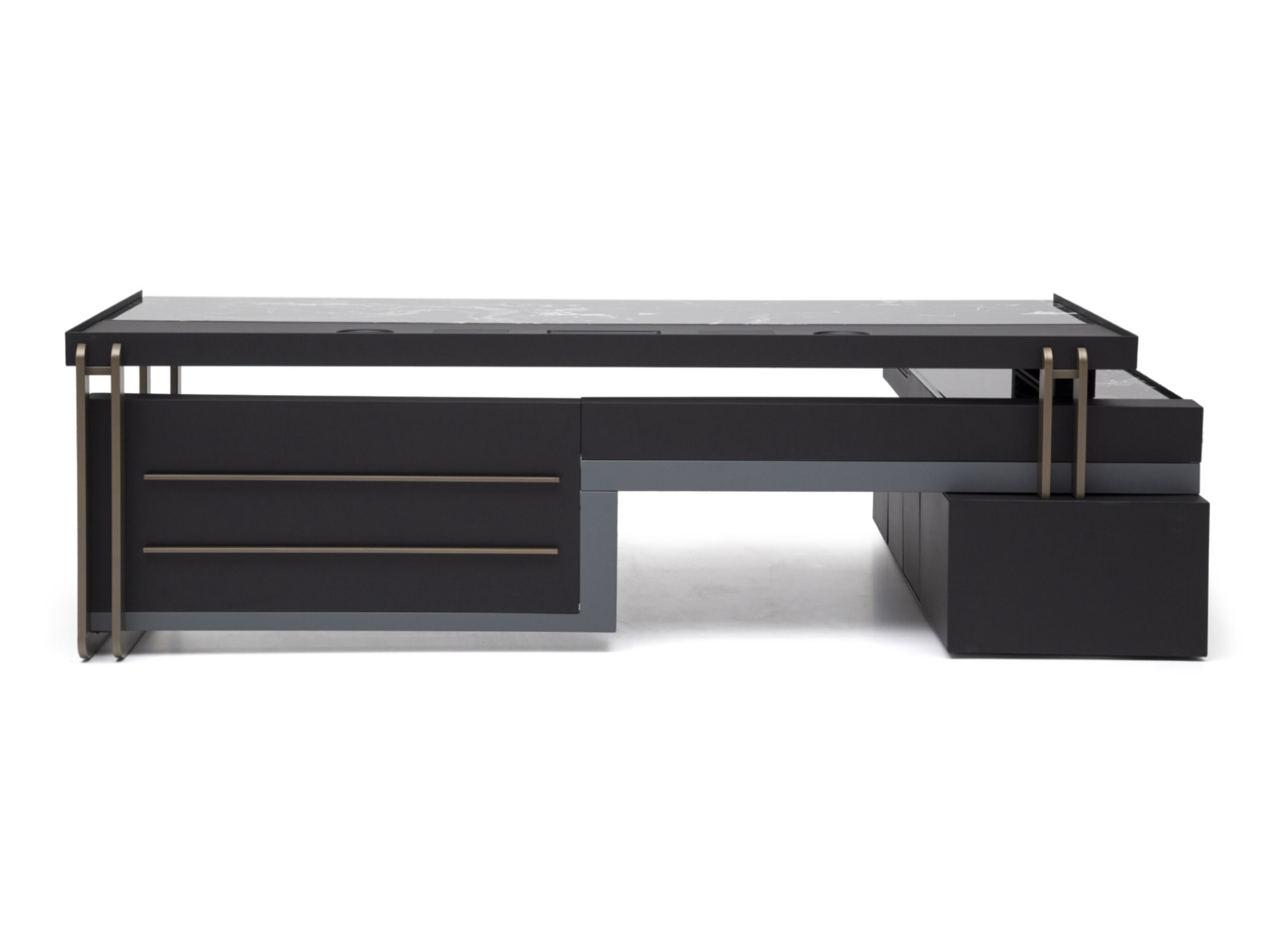 Ağır yapısı ile güven veren Bigboss, alışılagelmişin dışında kullanılan renkli metal vurgularla diğer mobilyalardan kendini ayırıyor. İnce yapısına rağmen, doygun mobilyayı dik tutan ayaklar başarıyla tasarlanmış masa yanı yardımcısından da destek alıyor. Tek parça standardından uzaklaşarak kalıptan ayrılan geniş çalışma yüzeyi, tasarımın detaylarındaki zarafeti daha göz alıcı yapıyor.