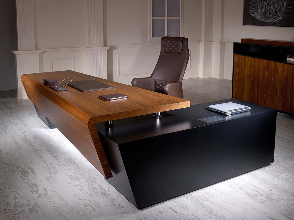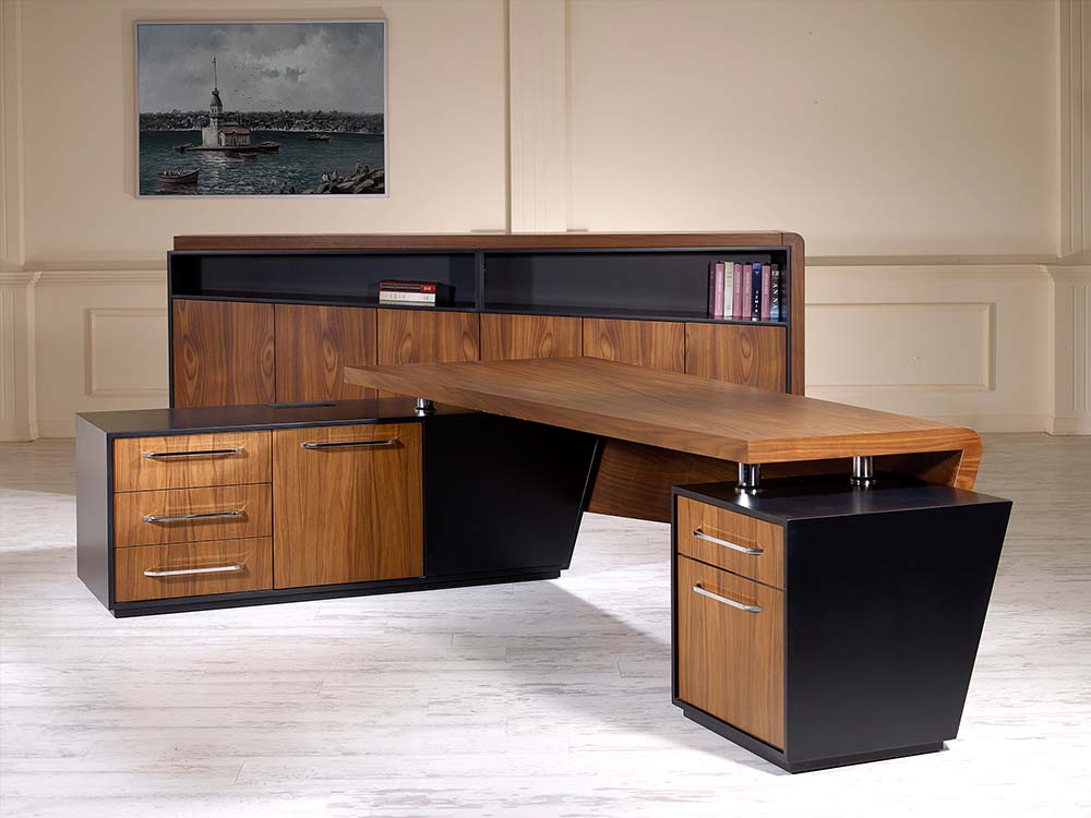 Masa üst paneli ve perdeyi tek bir parçada birleştiren GLORY’de ahşap işçiliği en üst düzeyde. Kendine has çizgilerini dolap ve sehpada sürdüren GLORY Vip Makam Takımı standart bir para kasasına da sahip. Orta ve yan sehpaları birleştiren modüler sehpa tasarımı ise oldukça modern ve fonksiyonel.
