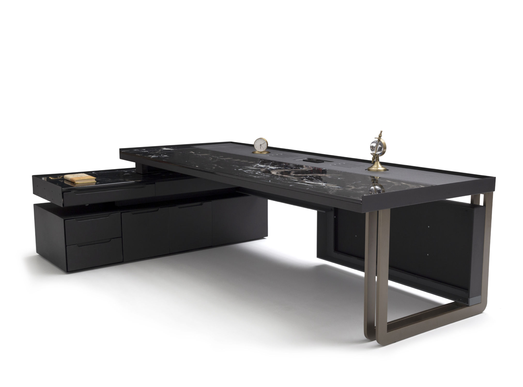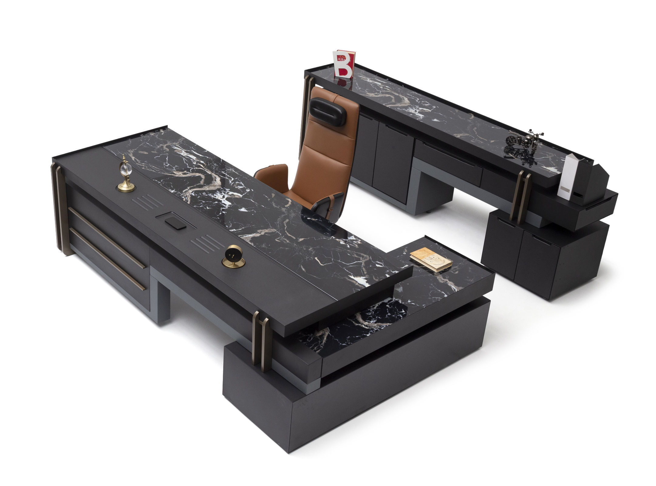 Ağır yapısı ile güven veren Bigboss, alışılagelmişin dışında kullanılan renkli metal vurgularla diğer mobilyalardan kendini ayırıyor. İnce yapısına rağmen, doygun mobilyayı dik tutan ayaklar başarıyla tasarlanmış masa yanı yardımcısından da destek alıyor. Tek parça standardından uzaklaşarak kalıptan ayrılan geniş çalışma yüzeyi, tasarımın detaylarındaki zarafeti daha göz alıcı yapıyor.